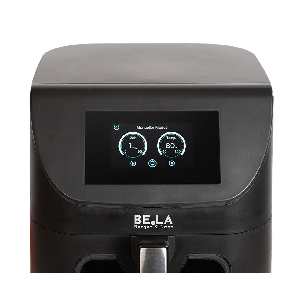 Mit der BergerLanz Heissluftfritteuse 8L1 wird gesundes Kochen besonders komfortabel. Das Gerät bietet ein Volumen von 8 Litern und eignet sich für vielseitige Anwendungen, vom knusprigen Snack bis zur vollwertigen Mahlzeit. Die Heissluftzirkulation sorgt für gleichmässige Ergebnisse bei minimalem Fettbedarf und arbeitet im Temperaturbereich von 80 bis 200 °C. Über das moderne Touch-Bedienfeld oder via App- bzw. WLAN-Verbindung lässt sich der Kochvorgang bequem steuern. Der 1700-Watt-Motor heizt schnell auf und verteilt die Wärme effizient. Sicherheitsfunktionen wie der Überhitzungsschutz und ein integrierter Timer ergänzen den Funktionsumfang. Die elegante schwarze Optik rundet das Gesamtbild ab, ideal für moderne Haushalte mit Anspruch an Technik und Design.