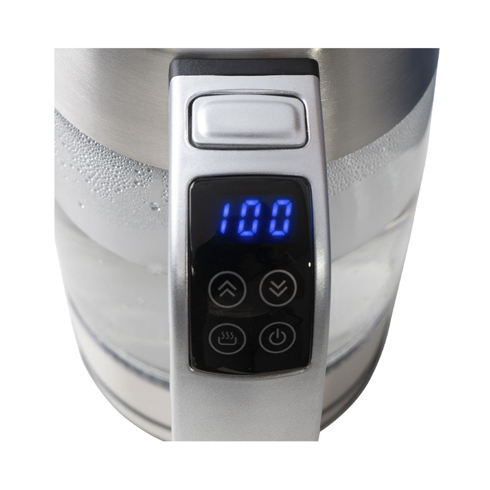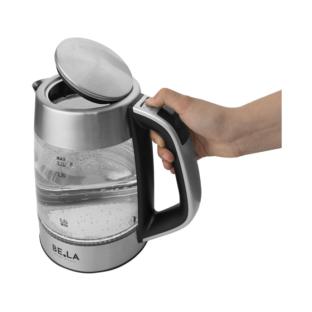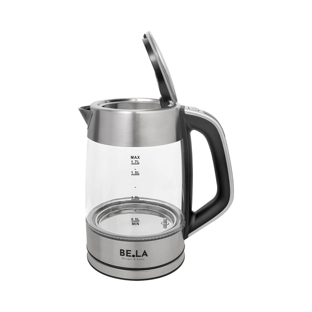 Modern, klar und leistungsstark. Der BergerLanz Wasserkocher 1.7L bietet eine stilvolle Lösung für schnelles Erhitzen von Wasser. Das transparente Gehäuse aus Glas in Kombination mit silberfarbenen Elementen sorgt für eine hochwertige Optik und volle Kontrolle über den Wasserstand. Mit einer Leistung von bis zu 2200 Watt bringt das Gerät bis zu 1,7 Liter Wasser effizient zum Kochen. Dank der praktischen Temperaturwahl-Tasten lässt sich die gewünschte Wassertemperatur individuell einstellen, ideal für Tee, Kaffee oder Babynahrung. Komfortfunktionen wie die integrierte Wasserstandsanzeige und der Deckelöffnungs-Knopf erleichtern die tägliche Nutzung. Perfekt für moderne Küchen, in denen Design und Funktion gleichermassen gefragt sind.