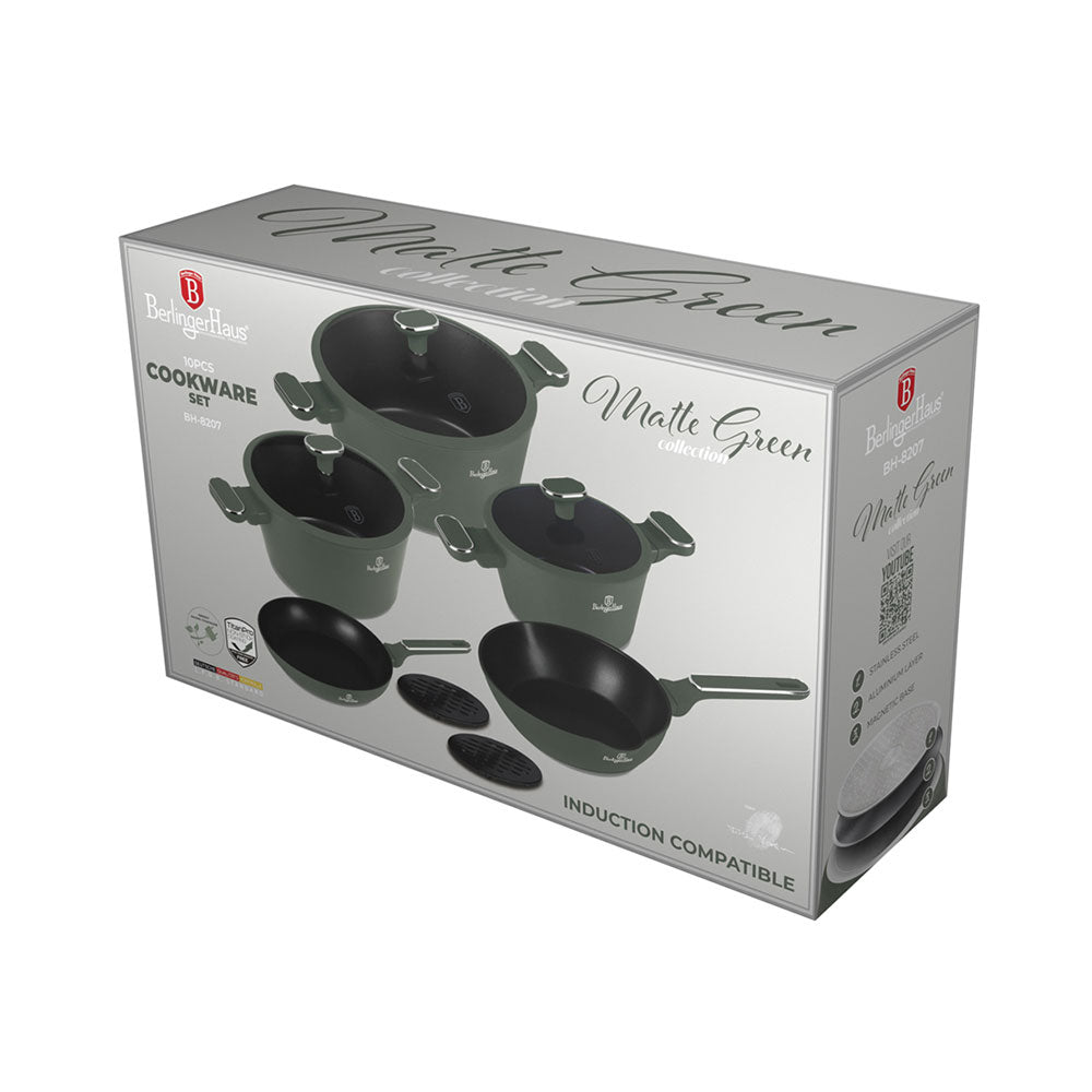 Berlinger Haus Küchenbedarf Haus 10-teiliges Kochgeschirr-Set Matte Green Collection