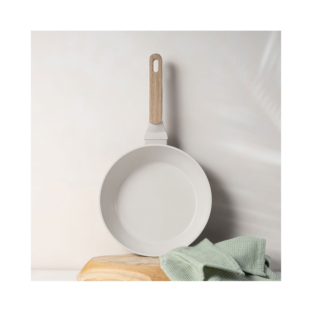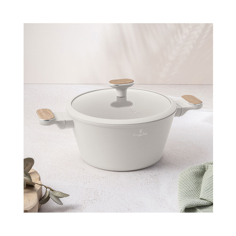 Mit dem Sahara Nordic Kochgeschirrset von Berlinger Haus bringst du Ruhe und Stil in deine Küche. Die matte Cremefarbe und helle Holzdetails schaffen eine warme, natürliche Atmosphäre. Die Pfannen mit TitanPro-Beschichtung sind langlebig, antihaftend und leicht zu reinigen. Die ergonomischen Griffe bleiben kühl und geben dir sicheren Halt beim Kochen. Der Turbo-Induktionsboden sorgt für schnelle und gleichmässige Wärmeverteilung auf allen Herdarten. Umweltfreundlich und frei von Schadstoffen ist dieses Set die perfekte Wahl für alle, die klares Design mit hoher Funktion verbinden möchten.