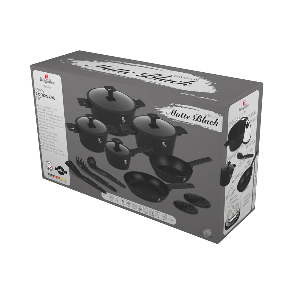 Berlinger Haus Küchenbedarf Haus 15-teiliges Kochgeschirr-Set Matte Black Collection