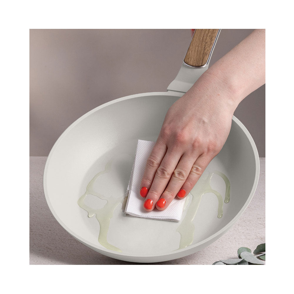 Mit dem Berlinger Haus Bratpfannen 3er Set aus der Sahara Nordic Collection bist du optimal ausgestattet. Die Pfannen aus geschmiedetem Aluminium kommen in drei Grössen: Ø 20, 24 und 28 cm. So findest du für jede Menge und jedes Gericht die richtige Pfanne. Die matt-creamfarbene Oberfläche mit Holzoptik wirkt nicht nur elegant, sondern passt perfekt zu deinem minimalistischen Stil. Die dreifache TitanPro-Antihaftbeschichtung verhindert das Ankleben und ermöglicht fettarmes Braten. Der „Stay Cool“-Soft-Touch-Griff mit silbernem Einsatz sorgt für sicheren und komfortablen Halt. Die Pfannen sind für alle Herdarten geeignet, auch für Induktion, und umweltfreundlich ohne PFOA, Blei oder Cadmium. Die Reinigung ist unkompliziert. So macht Kochen wirklich Spass!