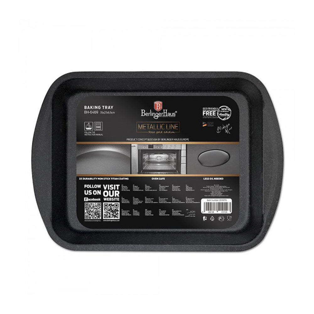 Produktinformationen:, Antihaft-Titanoberfläche zum Backen , Es braucht ein minimum an Fett, Lebensmittel brennen nicht an, Innenbodenabmessungen: 29 x 24,5 cm, Geeignet für den Backofen bis zu Temperaturen von 240°C, Rosé-gold-metallic-Aussenfarbe, Umweltfreundlich enthält keine schädlichen Substanzen, wie PFOA, Blei oder Cadmium