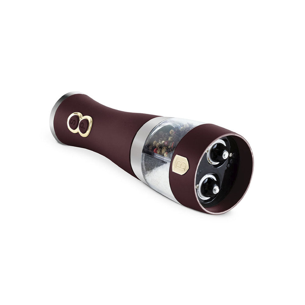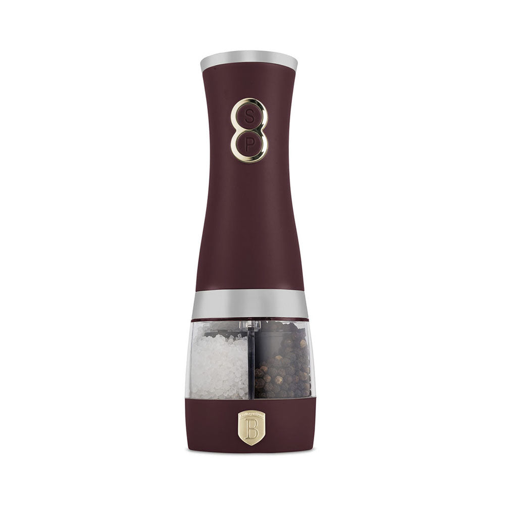 Der Berlinger Haus Salz- und Pfefferstreuer 2 in 1 aus der matt bordeaux Leonardo Collection verleiht deiner Küche sowohl Stil als auch Funktionalität. Gefertigt aus hochwertigem Edelstahl mit einem Keramikmahlwerk, ermöglicht er eine bequeme Einhandbedienung durch zwei Tasten. Der elektrische Streuer, der 6 AA-Batterien (nicht enthalten) benötigt, verfügt über einen leicht nachfüllbaren doppelwandigen Acrylbehälter. Das matt bordeaux Design vereint Eleganz und Qualität und macht dieses Premium-Produkt zur idealen Ergänzung für jede moderne Küche., , , Produktinformation, , Batterien: 6 Stück AA (nicht enthalten), Zwei Tasten für die Bedienung, Einhandbedienung, Leicht nachfüllbar, Doppelwandiger Acrylbehälter, Elektrisch, Premiumqualität Edelstahl, Stilvoll