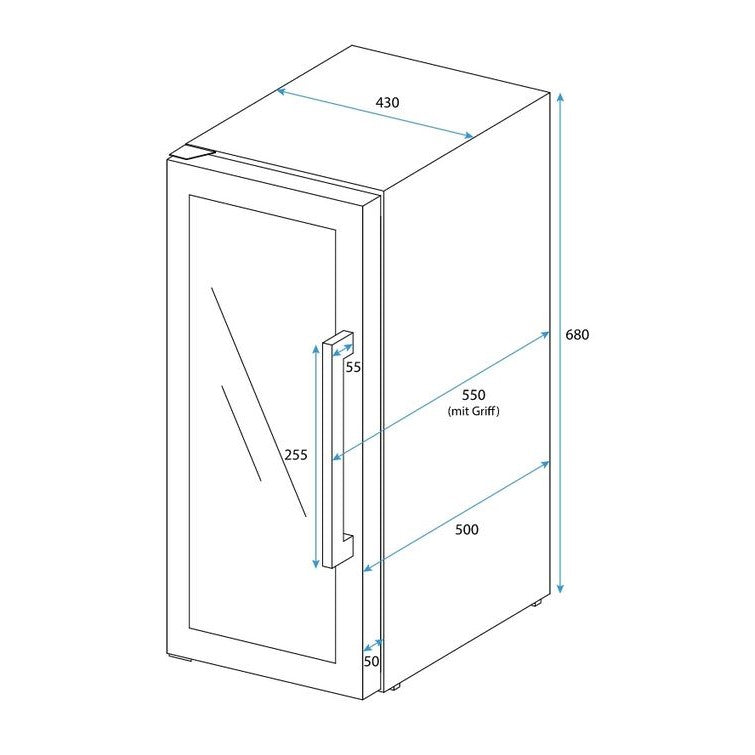 • Tür mit Selbstschliessmechanismus und LED-Innenbeleuchtung