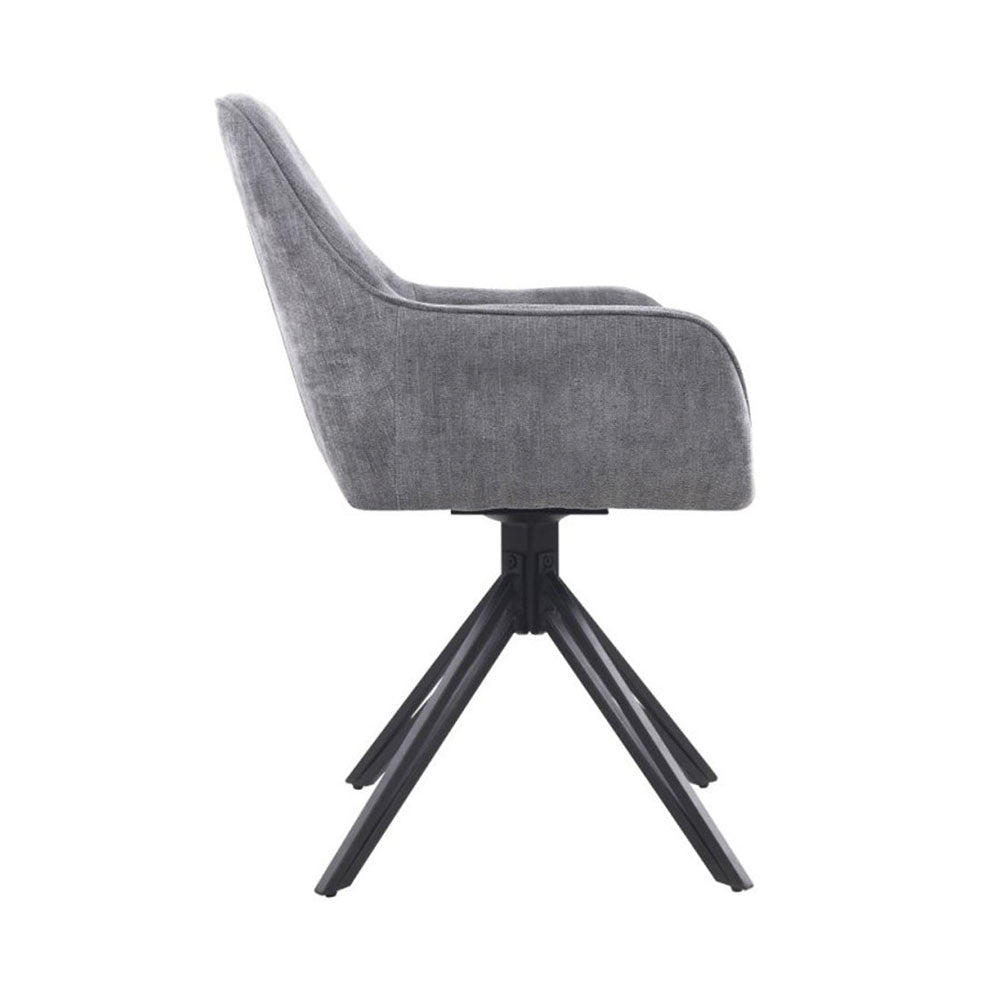 Der CONTINI Esszimmerstuhl PERUN kombiniert schlichte Eleganz mit Funktionalität. Der graue Stoffbezug ist weich und angenehm, während die dicke Schaumstoffpolsterung für bequemes Sitzen sorgt. Mit einer Sitzfläche von 42 x 42 cm und einer Höhe von 50 cm bietet der Stuhl eine angenehme Sitzposition. Das mattschwarze Metallgestell sorgt für Stabilität und eine moderne Optik. Durch die 180°-Drehfunktion kannst du dich flexibel bewegen, ohne den Stuhl verschieben zu müssen. Mit einer Tragfähigkeit von bis zu 120 kg ist er robust und alltagstauglich – eine praktische Ergänzung für dein Esszimmer., , , Produktinformationen, , Material aus Stoff und Metall, Max. Tragfähigkeit 120kg, 180°-Drehfunktion, Sitzfläche 42 x 42cm, Sitzhöhe 50cm