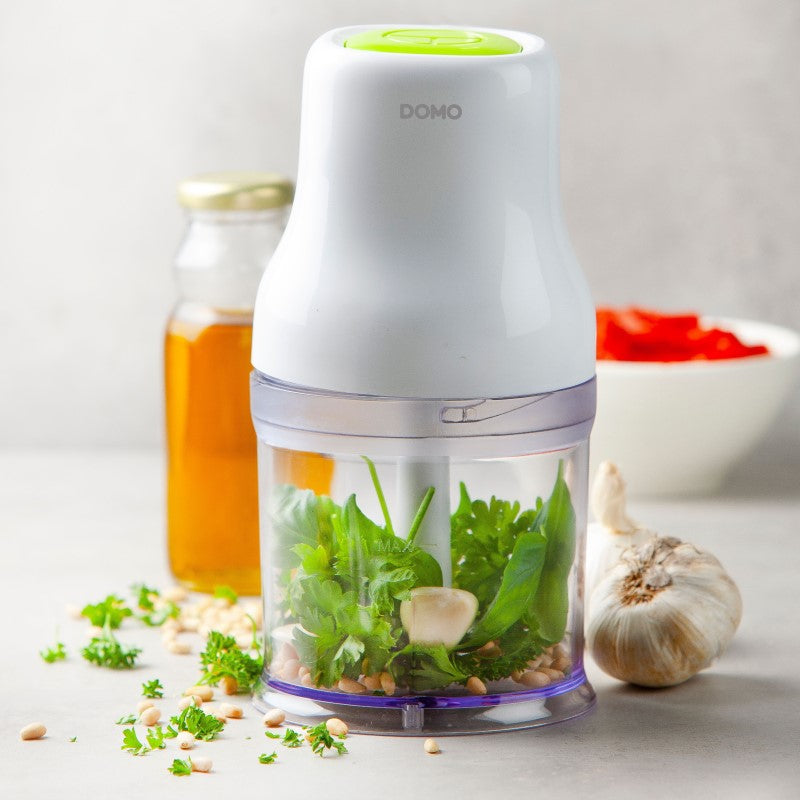 Ideal zum Zerkleinern von Zwiebeln, Kräutern, Gemüse, Fleisch, Eiswürfeln, Nüssen… und für die Zubereitung von Dipsossen auf Knopfdruck