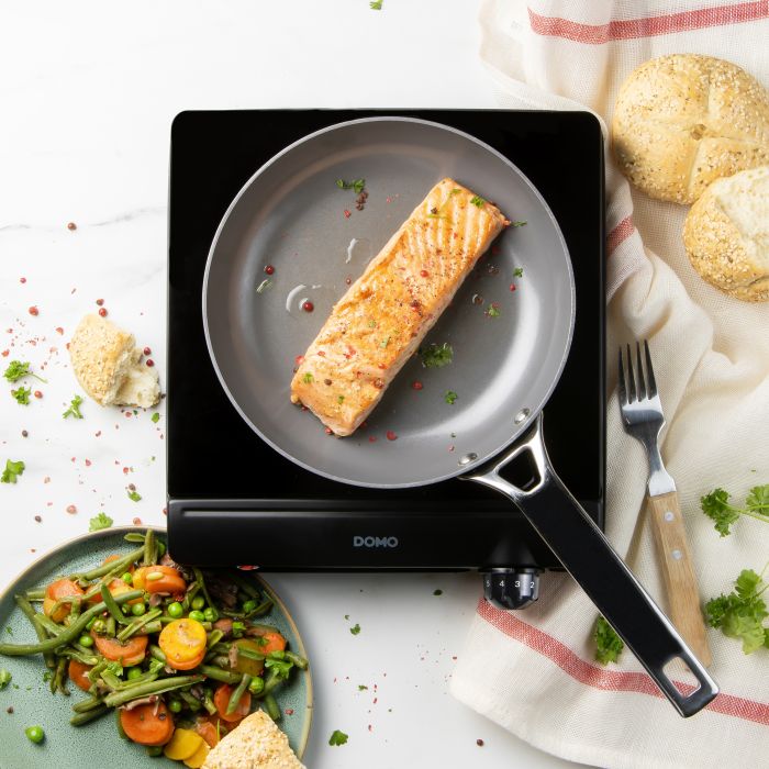 Die keramische Kochplatte DO30111KP von Domo bietet effizientes Kochen und schnelle Erwärmung mit moderner Infrarot-Technologie.