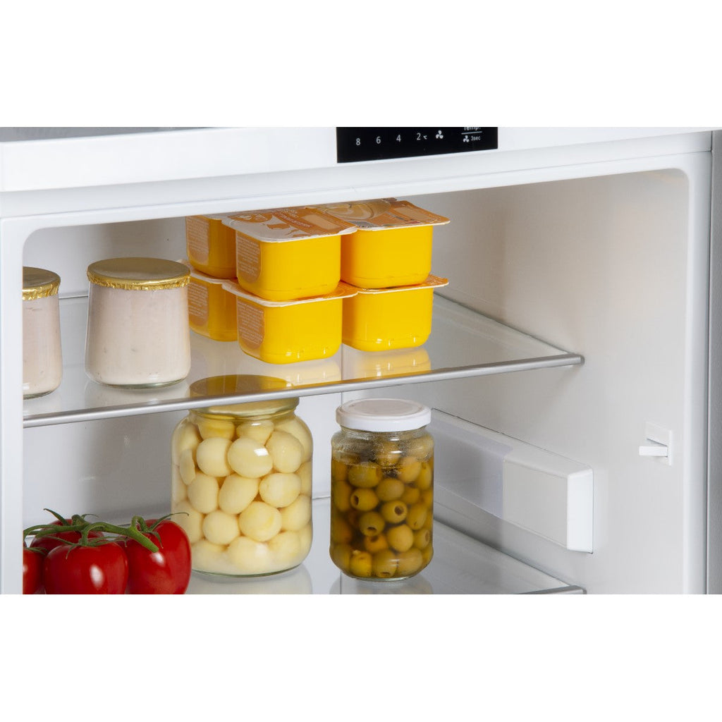 Mit einer Kapazität von 134 Litern und einer Höhe von 84,5 cm können Sie das Gerät überall unterbringen. Der Kühlschrank hat die Energieeffizienzklasse D. Der Türanschlag kann verändert werden und die Tür schliesst durch die magnetische Dichtung ganz einfach. Regeln Sie die Temperatur im Kühlschrank mit der elektronischen Temperatureinstellung.