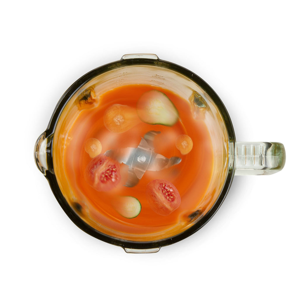 Praktische Details wie der Deckel mit Füllöffnung und integriertem Messbecher erhöhen den Bedienkomfort. Die einfache Reinigung aller Komponenten macht den Mixer besonders benutzerfreundlich.