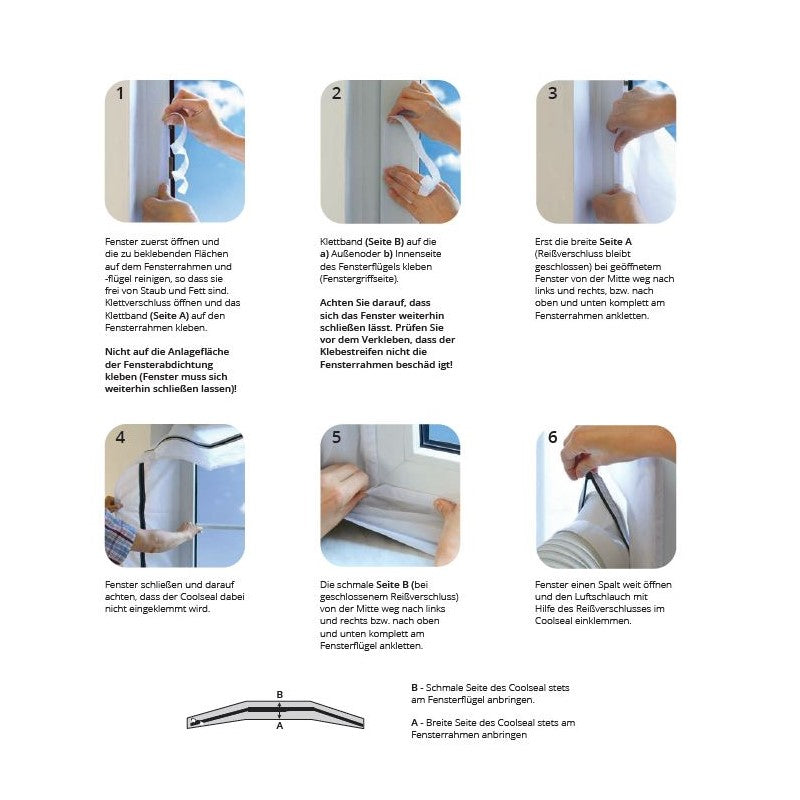 Coolseal verhindert, dass heisse Luft zurück in Ihren Raum gelangt und hält Ihren Raum kühl. Coolseal bildet einfach eine Barriere um Ihr offenes Fenster, schließt mit einem Schieberegler um den Abluftschlauch Ihrer mobilen Klimaanlage und verhindert, dass warme Luft von aussen nach innen zurückkommt, wodurch die Kühlleistung Ihrer mobilen Klimaanlage effizienter wird. Coolseal ist ein universelles Produkt und passt zu allen mobilen Klimaanlagen!