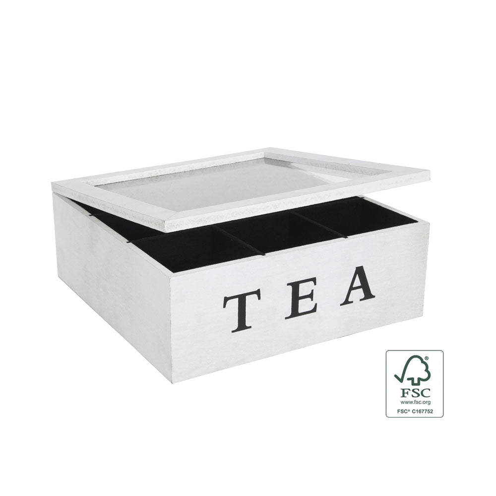 FS-STAR Zubehör Haushalt Teedose aus Holz mit 9 Kammer weiss