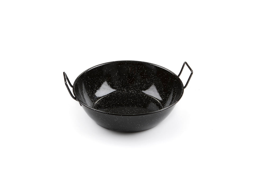 Hohe Pfanne mit zwei Griffen. Die Pfanne hat einen Durchmesser von 500 mm, ist aus emailliertem Stahl und hat zwei Griffe, für eine einfache Handhabung. Die Emaille, mit der die Pfanne überzogen ist, ist glasig und säurebeständig. Mit einem Fassungsvermögen von 17 Litern hat diese Pfanne die ideale Grösse für Gerichte, die schmoren sollen. Geeignet für alle Herdarten, einschliesslich Induktion. Handwäsche empfohlen.