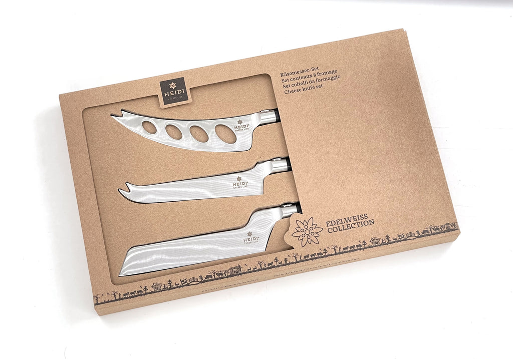Heidi Cheese Line Käsemesser 3er Set von Käsemessern mit Edelweiss-Kropf