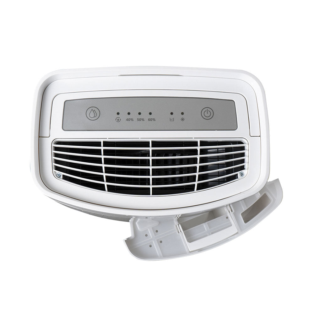 Produktinformation, Kompaktes, modernes Design, Einfache Bedienung, Mit praktischem Griff, Mobil dank 4 Rollen, Einstellbare Feuchtigkeit: 40-50-60 % Dauerbetrieb, Automatischer Stopp bei vollem Wasserauffangbecken, Mit Abtaumodus, Inkl. Anschluss für Wasserablassschlauch, Abtauungsfunktion: Umluft, 25L/24 h Entfeuchtungsleistung , Kompatibel mit Externer Zeitschaltuhr, Kondenswasser Schlauchanschluss (Ø 13mm)