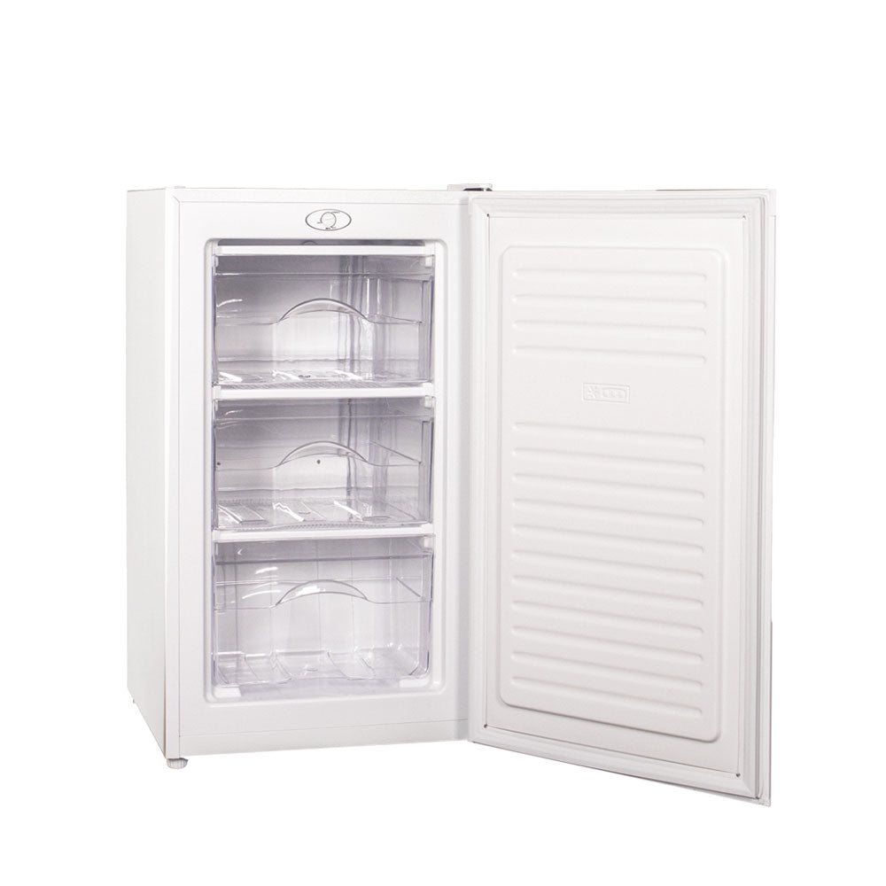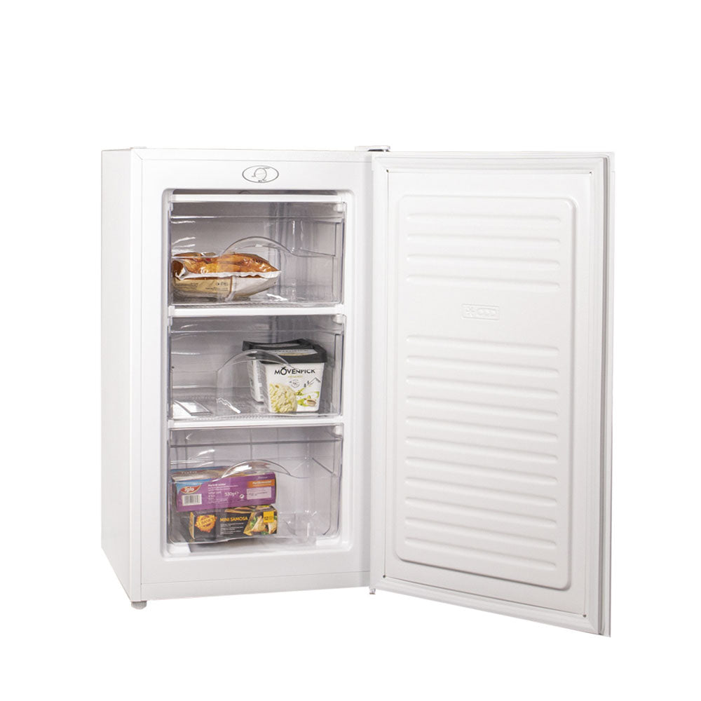 Der Gefrierschrank von Kibernetik ist die perfekte Wahl, wenn es darum geht, kleinere Mengen an Lebensmitteln aufzubewahren oder als Zweitprodukt zu einem bereits vorhandenen Gefrierschrank. Mit einem Fassungsvermögen von 64 Litern bietet er genug Platz, um eine Vielzahl von Lebensmitteln wie Obst, Gemüse und Fleisch aufzubewahren., , Die drei Schubladen des Gefrierschranks bieten ausreichend Platz für eine Vielzahl von Lebensmitteln, die bei Bedarf auf drei verschiedenen Temperaturstufen eingestellt werden können. Wenn es nötig ist, kann die Tür auch auf die andere Seite umgebaut werden, um den Gefrierschrank noch flexibler zu gestalten.