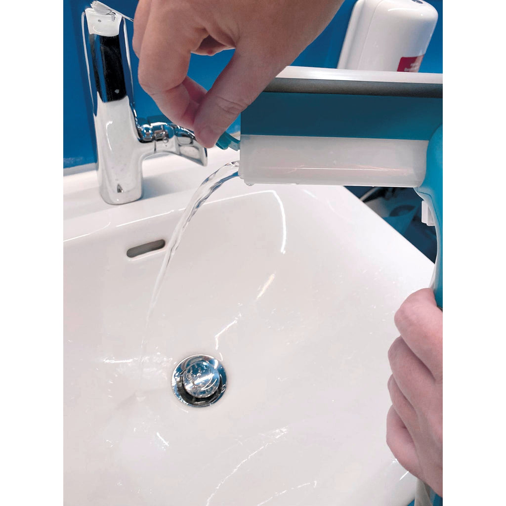 • Integrierter Auffang-Tank verhindert Schmutzwasser auf dem Boden – für sauberes Arbeiten ohne Tropfen
