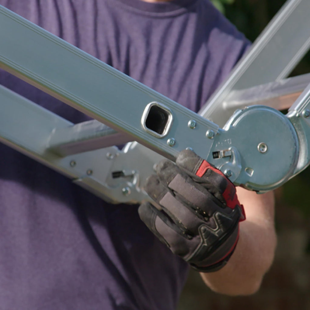 Diese Leiter lässt sich auch spielend leicht in ein Arbeitsgerüst oder eine Arbeitsplattform umwandeln, ideal für Malerarbeiten, Fensterputzen oder Gartenarbeiten. Dank ihrer vielseitigen Einsatzmöglichkeiten ist sie für zahlreiche Arbeiten rund ums Haus geeignet.