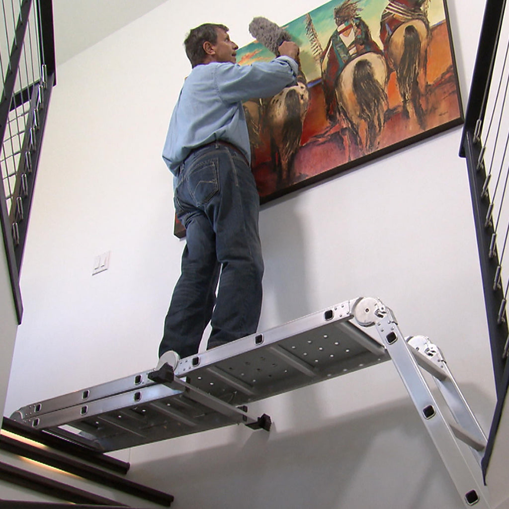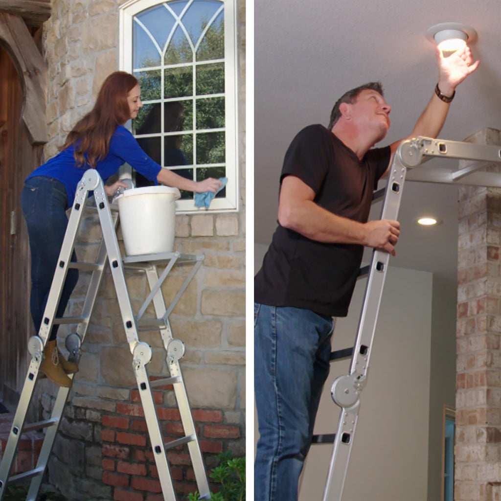 Die Super Ladder ermöglicht Ihnen müheloses Arbeiten an schwer zugänglichen Stellen. Mit der Möglichkeit, sich in eine Trittleiter oder eine Anlegeleiter zu verwandeln, können Sie ganz einfach Glühbirnen wechseln, Deckenleuchten montieren oder Reinigungsarbeiten durchführen - ganz ohne umständliche Möbelverschiebung.
