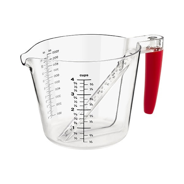 Messkrug 1000ml.Das genaue Befüllen des Kruges ist dank der schrägen Skala, die ein Ablesen von oben ermöglicht, extrem einfach. Auf diese Weise entfällt das wiederholte Ausfüllen, Kontrollieren und Anpassen.Es ist pflegeleicht und spülmaschinenfest.