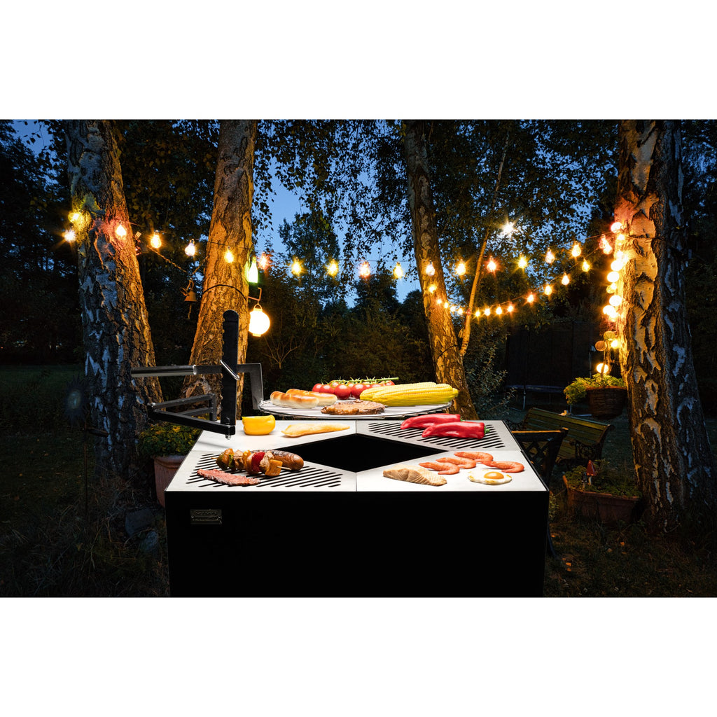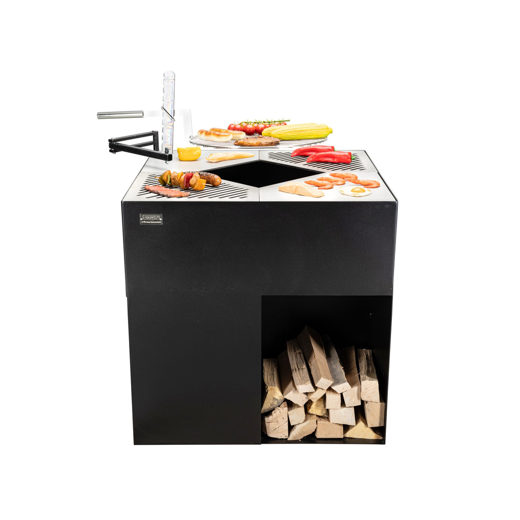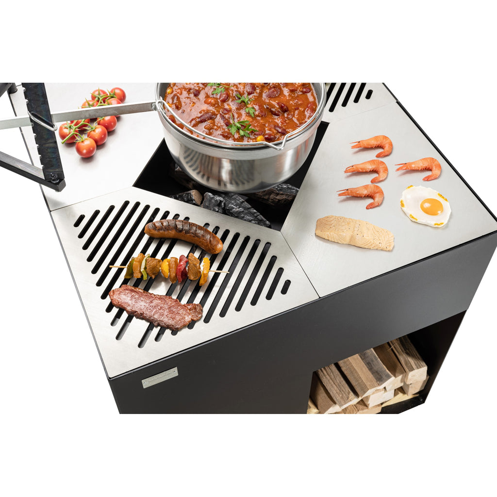 Die Feuerstelle Quadro Nero bietet ein Multifunktionales Outdoor Cooking.