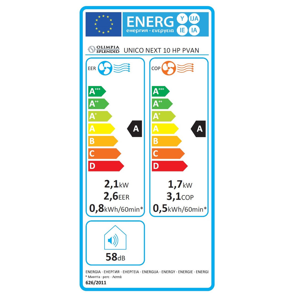 Die Klimaanlage ohne Ausseneinheit Unico Next 10 HP PVAN von Olimpia Splendid bietet eine innovative Lösung für die Raumklimatisierung mit besonderem Fokus auf akustischem Komfort und Umweltfreundlichkeit.