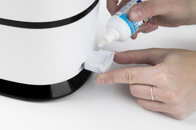Nicht nur ein einfacher Luftbefeuchter: Limpia 6 hat ein praktisches Schublädchen für ätherische Öle, die während der Luftbefeuchtung einen angenehmen Duft verbreiten.
