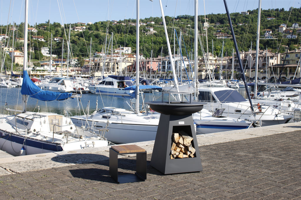 Onfire embodies the joy of gathering a fire and enjoying grilling as a meeting point and the center, beauty and taste combine. The slim design by Onfire is elegant and inspired by nature. Two concepts that find itself in the elliptical hotplate and the pedestal on which the plate rests. Onfire is operated with wood, a choice that is in line with the sustainability aspect of the product as well as the effortless maintenance that is required for the operation. The Onfire fire disk is available as a version in Cortan steel or as a powder-coated black version with corrosion-resistant treatment. Onfire is weatherproof and can be left outdoors when not in use. This model has a storage space for wood and tool. The temperature of the plate varies depending on the proximity to the fire. Onfire prepares grill enjoyment all year round, it is the perfect heart for spring and summer barbecues, but it is also a great option for cooking outdoors in order to be able to enjoy grill dishes in the cold months. The onfire experience can be improved by a large selection of accessories: classic grill, wok attachment, device for skewers, pizza oven and much more. Onfire transforms grilling into a culinary journey on which you can experience different kitchens and cooking styles. With onfire, any type of food can be prepared with different techniques: hot plates, grilling, smoking and warm -up of dishes. Enjoy new opportunities with Onfire Grills. Our extensive range of accessories also enables roasting, frying, sautéing and pizza baking. There is even more in Onfire, our great recipe book will inspire gourmets, to cook food and incredible dishes from all over the world. From the main course to Desset. Mass the eliptical plate: 95x86 cm / thickness 10 mm diameter shell / grill: 80 cm height: 119 kg available as accessories: square attachment (item no. 559013) / cover cover (item no. 559022) / wood ring (Art.-No. 559012)