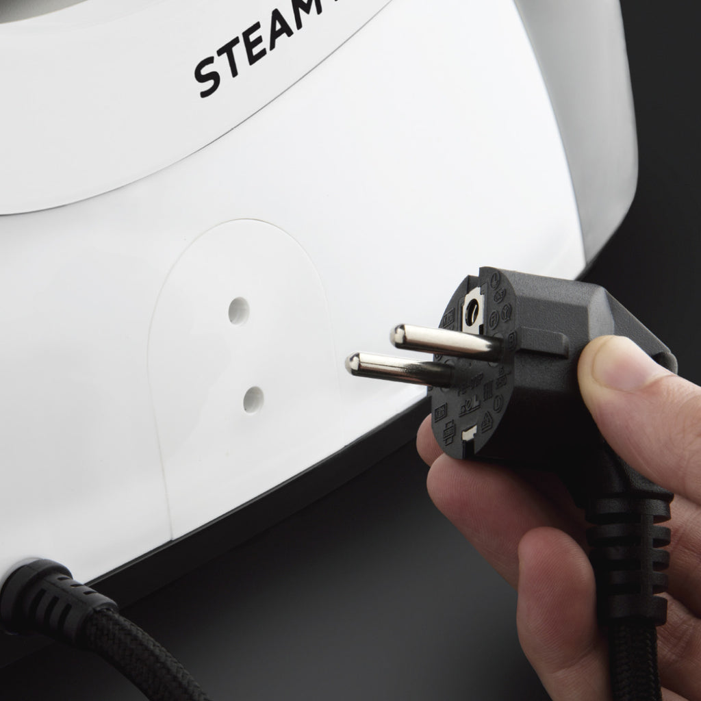 Die 2.400 Watt starke Steam Power Dampfbügelstation Schwarz mit Edelstahl-Bügelsohle sorgt im Handumdrehen für knitterfreie Wäsche. Für beste Bügelergebnisse sorgt ein variabler Dampf von bis zu 90 g/min. Mit der Vertikaldampffunktion können hängende Textilien wie z. B. Gardinen oder Sakkos gebügelt werden. Der herausnehmbare Wassertank kann jederzeit leicht aufgefüllt werden. Mit 1.3 l Fassungs-vermögen ermöglicht er ein langes Bügeln ohne Nachfüllen. Für eine sichere Aufbewahrung können sowohl der Dampfschlauch als auch das Stromkabel einfach verstaut werden.