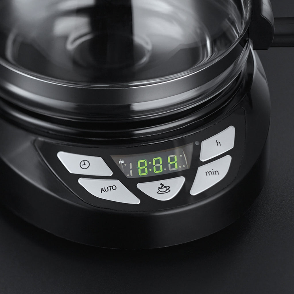 Die Frühstücksserie Textures Plus überzeugt mit ihrem Design aus matten und glänzenden Kunststoffelementen, welches mit einer hochwertigen Ausstattung kombiniert wird. Die Textures Plus Digitale Glas-Kaffeemaschine überzeugt mit hochwertigen Technologien wie der Russell Hobbs Brausekopf-Technologie. Zudem überzeugt sie durch ein digitales Bedienelement mit programmbierbarem Timer und einem Fassungsvermögen von 1.25 Litern.