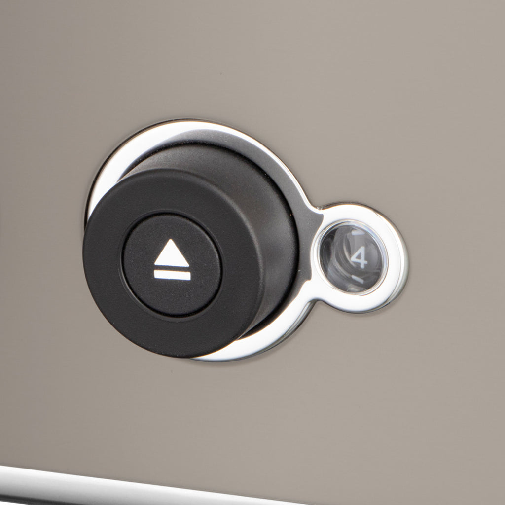 Ready to show off! Die Distinctions Frühstücksserie brennt darauf, der Welt zu zeigen, was in ihr steckt. Das Gewicht des Wasserkochers ist brillant ausbalanciert. Die LED-Anzeige des Toasters zählt die Zeit bis zur Fertigstellung. Die Espressomaschine schaltet blitzschnell zwischen Brüh- und Dampfbetrieb um. Und dann beeindruckt sie mit all dem leckeren Toast, Tee und Kaffee, den sie zubereitet. Die Distinctions Frühstücksserie ist bereit, alle zu beeindrucken: mit ihrem Aussehen, ihrer Funktionsweise und ihrer Zubereitung. Im unverwechselbaren Design des Russell Hobbs Titanium Distinctions Toasters trifft Stil auf Funktionalität. Mit längeren Schlitzen, einem Bräunungsregler für die perfekte Bräunung, „Lift and Look", um den Fortschritt des Backvorgangs zu überprüfen und eine LED-Anzeige, die die Zeit bis zur Fertigstellung anzeigt, ist er eine vorzeigbare Ergänzung deiner Frühstücksserie.
