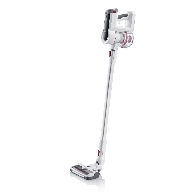 Ob Haare auf dem Boden, Krümel auf dem Tisch oder Staub an der Decke, der SEVERIN 2-in-1 Hand- und Stielsauger ist für alle Situationen geeignet. Dank des flexiblen Teleskop-Saugrohrs mit einer Klickverbindung wird aus dem Stielstaubsauger schnell ein Handsauger gemacht. Das 3-in-1 Zubehör, bestehend aus Polster- und Fugendüse, ist für die Reinigung von verschiedenen Polsterarten sowie für das Reinigen von Möbeln mit empfindlichen Oberflächen geeignet. Das Set wird ergänzt durch die praktische Ladestation mit einer Wandhalterung, an der auch das Zubehör befestigt wird. Der leistungsstarke 400 W Digitalmotor gewährleistet eine hohe Saugleistung, wessen Saugkraft mit den Modi "Eco, Middle und Power" reguliert werden kann. Lästige Ladeunterbrechungen werden durch die lange Akku-Laufzeit von bis zu 60 Minuten verhindert. Der Akkustaubsauger ist dank E12 Abluft-Filter auch für Allergiker geeignet und der Staubbehälter kann einfach per Knopfdruck geleert werden. So steht dem Entfernen von Tierhaaren, Schmutz, Feinstaub und Allergenen nichts im Weg.