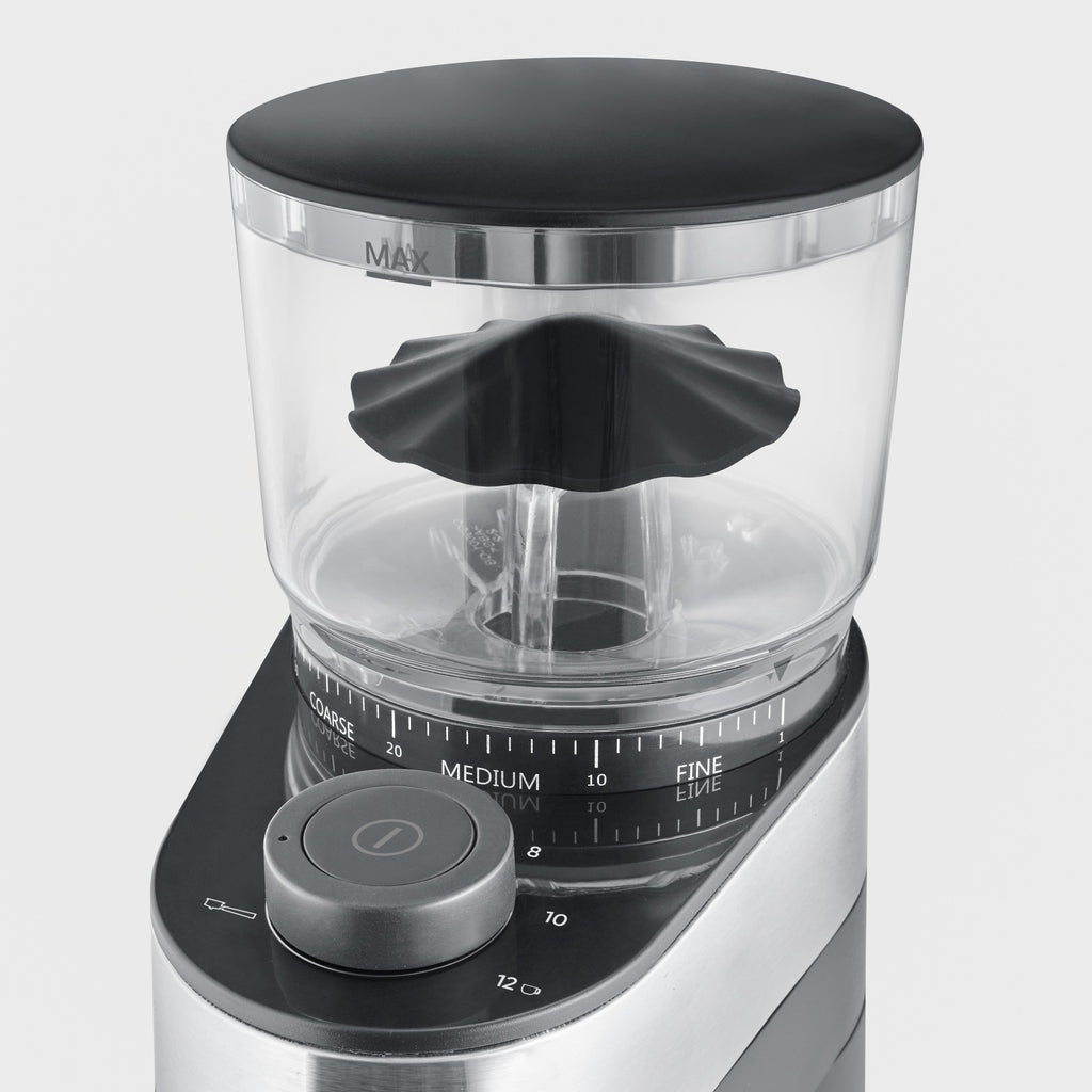 • Aromaschonen­des Edelstahl-Scheibenmahlwerk für gleichmässige Ergebnisse