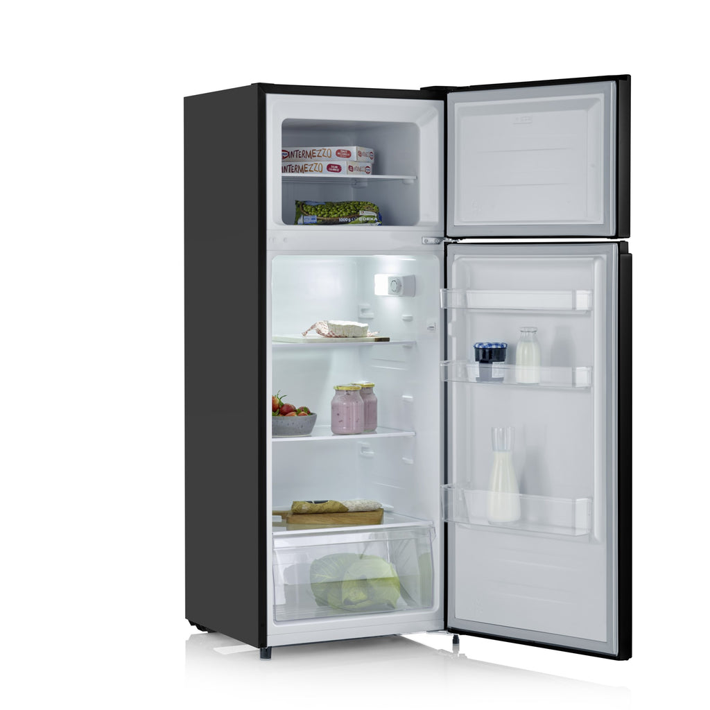 Kühl-/Gefrierkombination DT8762 von Severin mit einem Nutzinhalt von 206 Liter, bietet genügend Platz für kleinere Haushalte.