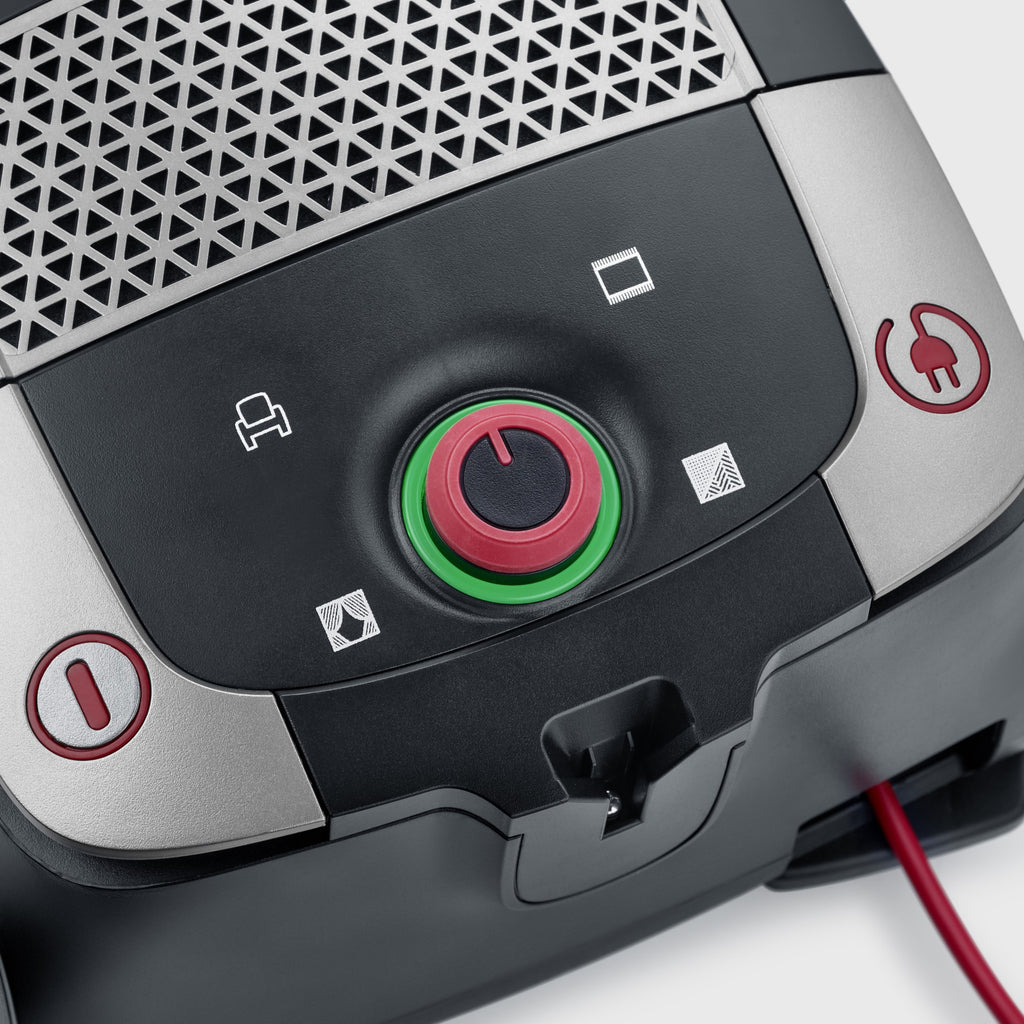 The extensive scope of delivery of the vacuum cleaner comprises an XXL padding nozzle, a flexible civil nozzle, the click brush system as well as joint and furniture. In addition, an accessory holder is integrated on the suction tube, which ensures order and quick access to the accessories.