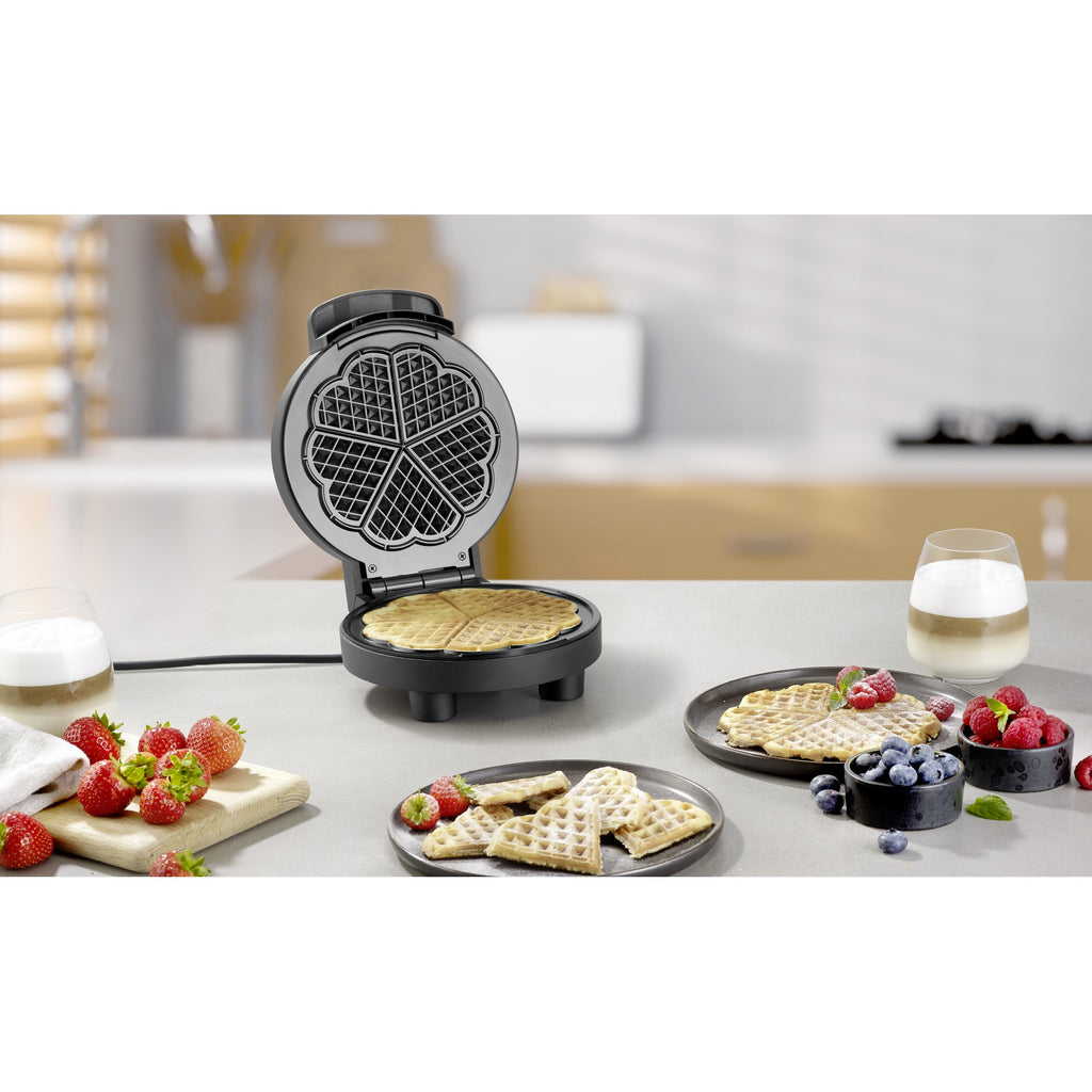 Mit dem Severin WA2116 Waffeleisen aus der eleganten Black Line gelingen köstliche Herzwaffeln im Handumdrehen – ganz nach Ihrem Geschmack und ohne PFAS.