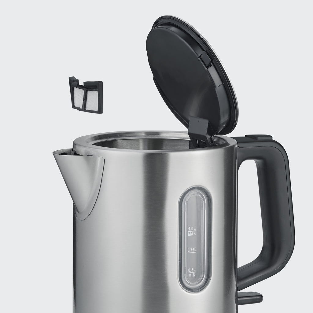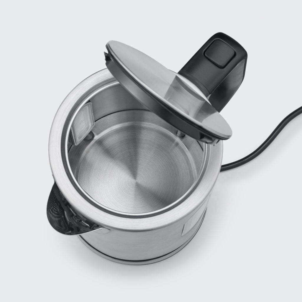 Mit seiner starken Leistung von 2.400 W bringt der Severin WK3401 Wasser besonders schnell zum Kochen und eignet sich perfekt für Tee, Kaffee oder andere Heissgetränke. Die 1-Liter-Kapazität ist optimal für den täglichen Einsatz, ohne unnötig Energie zu verbrauchen. Das kompakte Edelstahlgehäuse sorgt für eine zeitlose Optik und hohe Langlebigkeit. Die beidseitig beleuchtete Wasserstandsanzeige ermöglicht eine komfortable Nutzung für Rechts- und Linkshänder, während der ergonomisch geformte Griff eine angenehme Einhandbedienung erlaubt. Dank XXL-Deckelöffnung, Edelstahlboden und verdecktem Heizelement lässt sich der Wasserkocher besonders einfach reinigen.