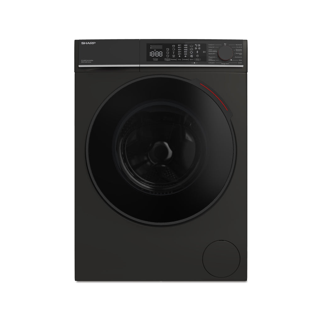 Die Waschmaschine in schwarz matt ES-WNFL814CMDA-CH von Sharp vereint fortschrittliche Technologie mit benutzerfreundlicher Bedienung für effizientes und schonendes Waschen im Haushalt.