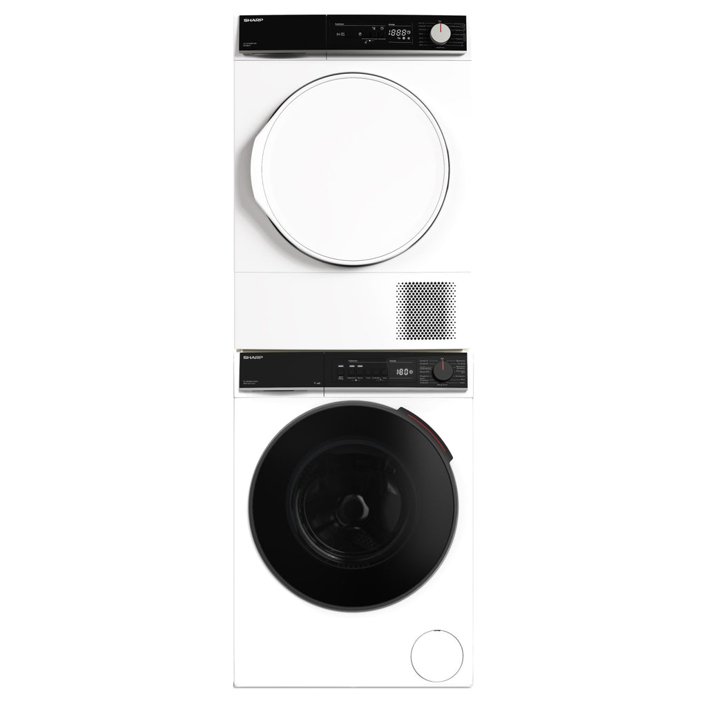 Der Sharp Waschturm, bestehend aus der Waschmaschine ES-WNFB814CWDA und dem Wäschetrockner KD-NHA8S8P1W3-CH, bietet eine perfekt aufeinander abgestimmte Lösung für Haushalte mit 3–4 Personen, die Wert auf moderne Technik, hohen Bedienkomfort und zuverlässige Ergebnisse legen. Beide Geräte kombinieren Effizienz, Benutzerfreundlichkeit und schonende Textilpflege zu einem praktischen Gesamtpaket.
