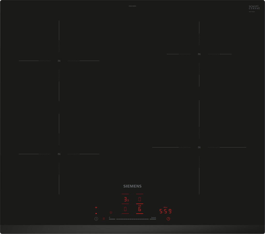 SIEMENS Kochfeld iQ300, Induktionskochfeld, 60 cm, Schwarz