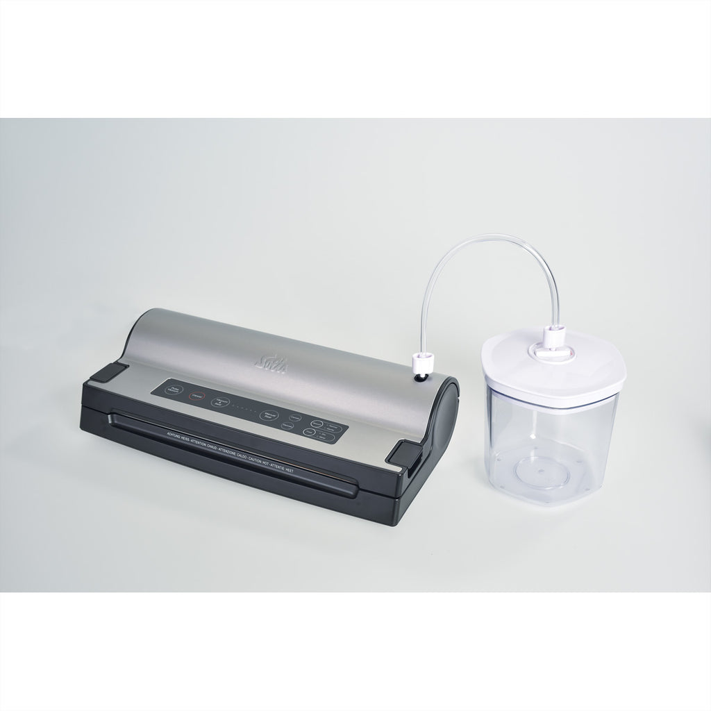 Dieses voll ausgestattete automatisierte All-in-One-Vakuumiergerät bietet viele Vorteile, um Lebensmittel wie ein Profi zu Hause professionell zu konservieren und sogar zuzubereiten. Die Maschine bietet 2 Betriebsarten für trockene und feuchte Lebensmittel und verfügt über eine Puls-Vakuumfunktion, die sie auch zum Vakuumieren von druckempfindlichen Lebensmitteln geeignet macht. Eine integrierte Tropfschale sammelt zuverlässig Feuchtigkeit, die während des Vakuumierens aus feuchten Lebensmitteln freigesetzt wird. Die Tropfschale ist zur einfachen Reinigung herausnehmbar.