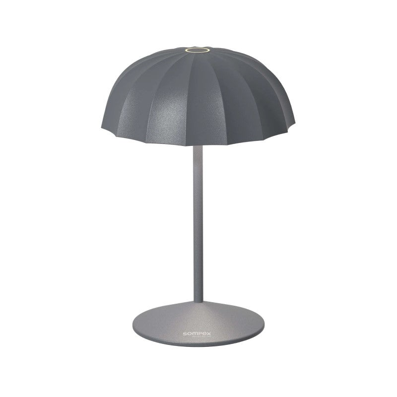Die Akku Tischleuchte Ombrellino von Sompex ist für drinnen und draussen geeignet.