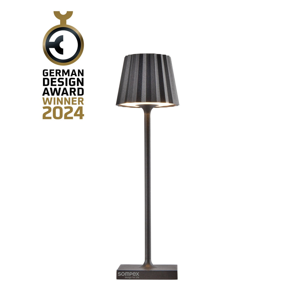 Die Troll Nano von Sompex ist eine vielseitige Akku-Tischleuchte für den Innen- und Außenbereich, die mit ihrem unverkennbaren Plissee-Schirm und ihrer langlebigen Aluminiumkonstruktion überzeugt.