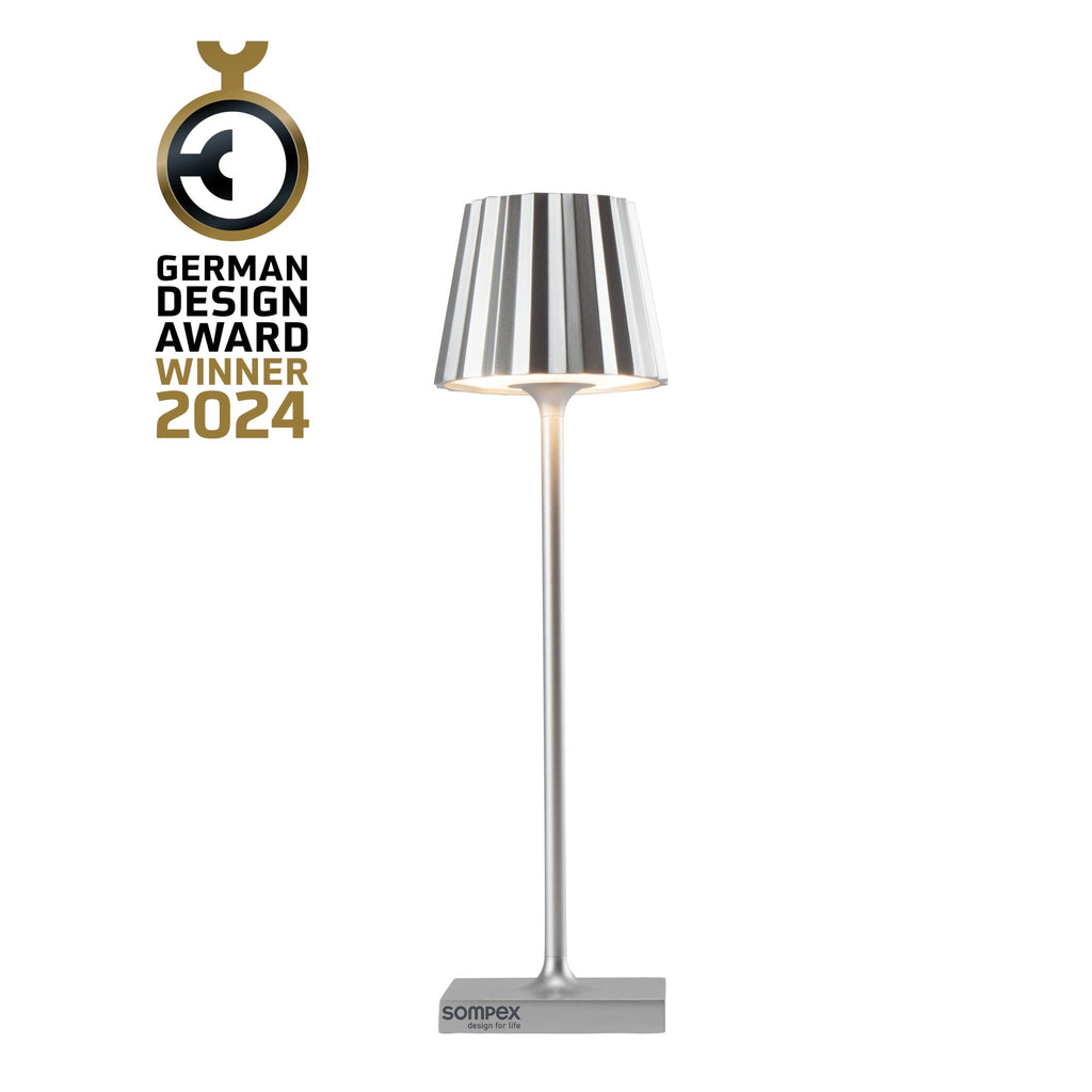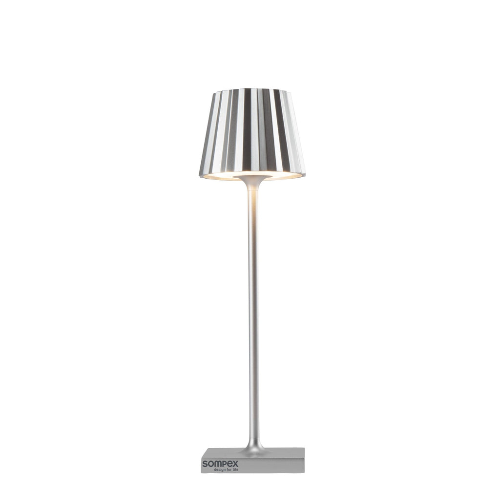 Die Troll Nano von Sompex ist eine vielseitige Akku-Tischleuchte für den Innen- und Außenbereich, die mit ihrem unverkennbaren Plissee-Schirm und ihrer langlebigen Aluminiumkonstruktion überzeugt.