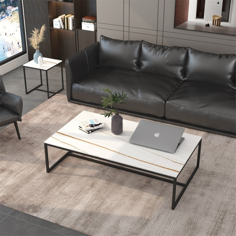 Unser weisser Couchtisch aus Keramikmarmor ist ein elegantes und zeitloses Möbelstück, das jedem Wohnzimmer eine luxuriöse Note verleiht. Die Keramikmarmorplatte ist äußerst widerstandsfähig gegen Kratzer und Flecken, was sie zu einer praktischen Wahl für den täglichen Gebrauch macht.