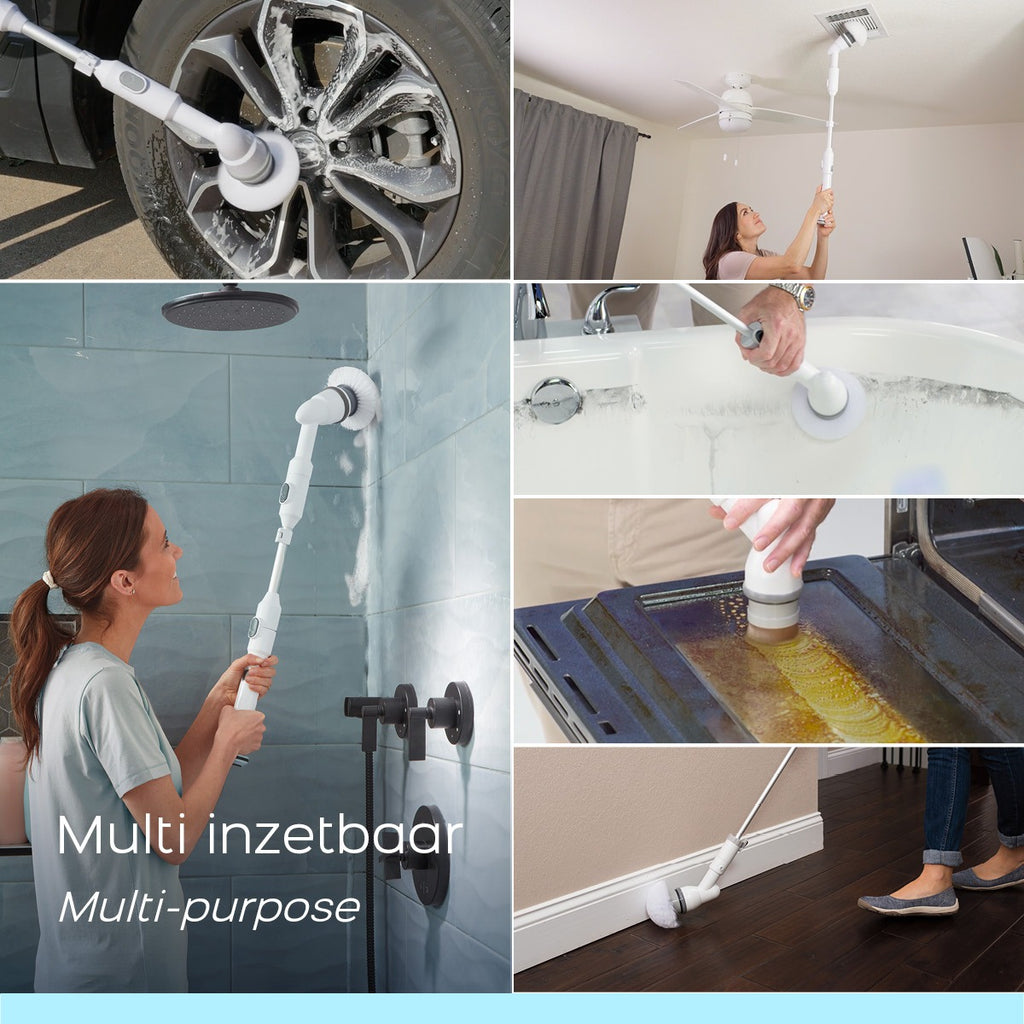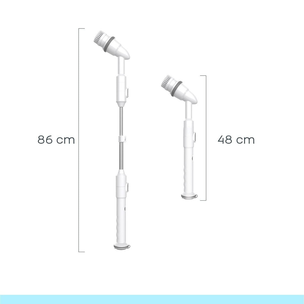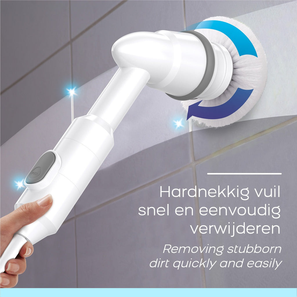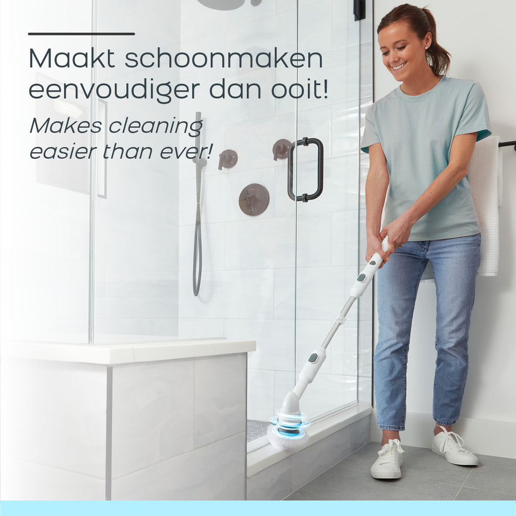 Voom Electric Spin Scrubber - Rechargeable & Cordless Scrub Brush Experience the convenience and power of the Voom Electric Spin Scrubber, the perfect solution for removing stubborn dirt quickly and easily. This lightweight, cordless scrubbing brush features a powerful 300 rpm motor with 5.5W power, making it ideal for bathtubs, showers, sinks, baseboards, floors, car rims and more. With the adjustable tube that ranges from 48cm to 86cm, you can easily reach both high corners and low places without having to bend or stretch. The rechargeable 1300 mAh battery offers up to 60 minutes of runtime*, so you can move freely without the hassle of cables. Thanks to the waterproof design, this scrubbing brush is durable and suitable for use in wet environments. The Voom Spin Scrubber comes with two interchangeable brushes for different cleaning tasks, a USB-C charging cable, and clear instructions. Whether you're looking to tackle tough stains or everyday messes, this versatile scrub brush makes cleaning easier than ever! The set includes: Voom Electric Spin Scrubber - Two interchangeable brushes (for heavy and general cleaning) - Adjustable handle (48cm to 86cm) - USB-C charging cable - Instruction manual