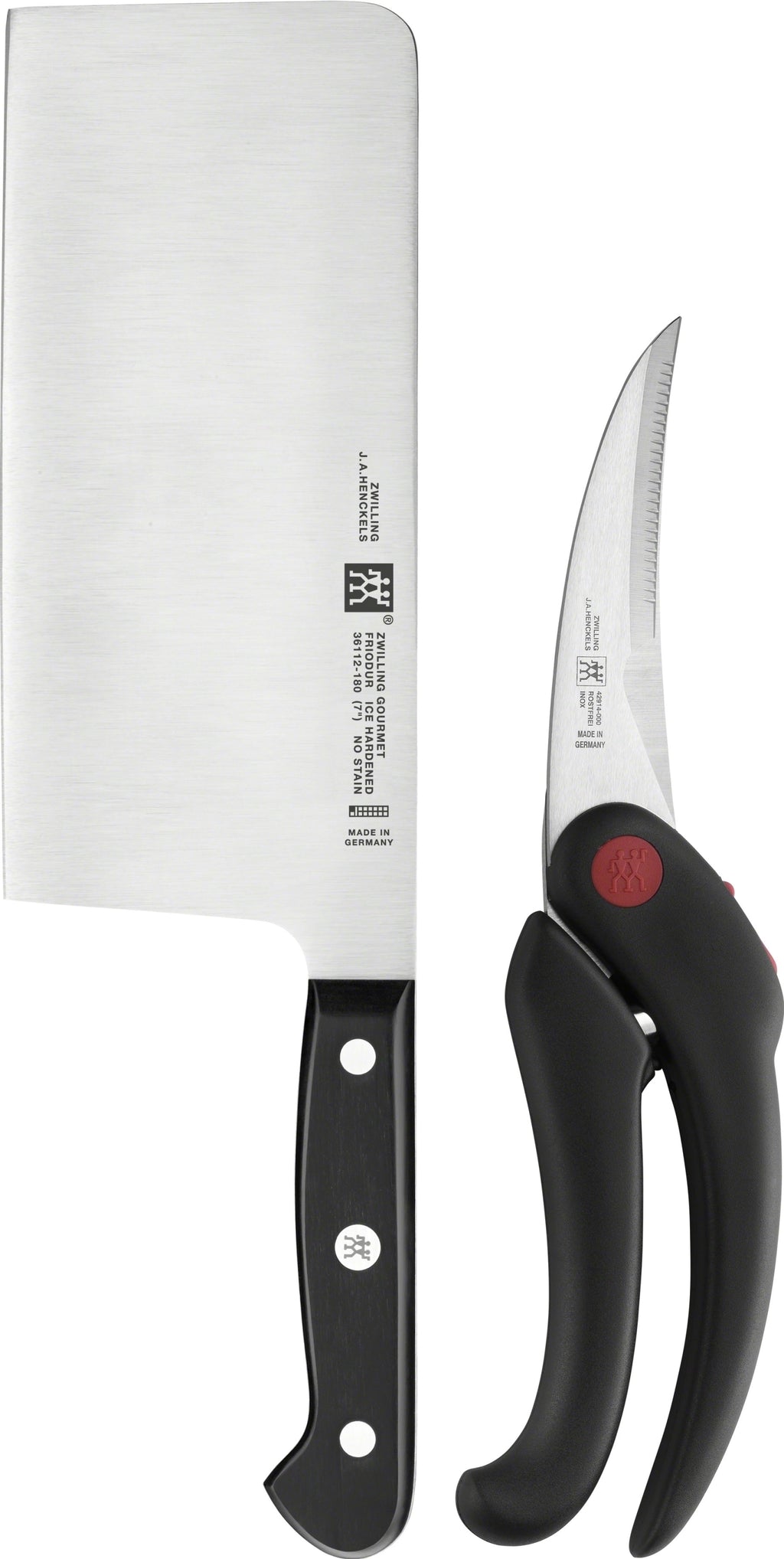 Enthält 1 Chinesisches Kochmesser (18 cm), 1 Geflügelschere (25 cm).