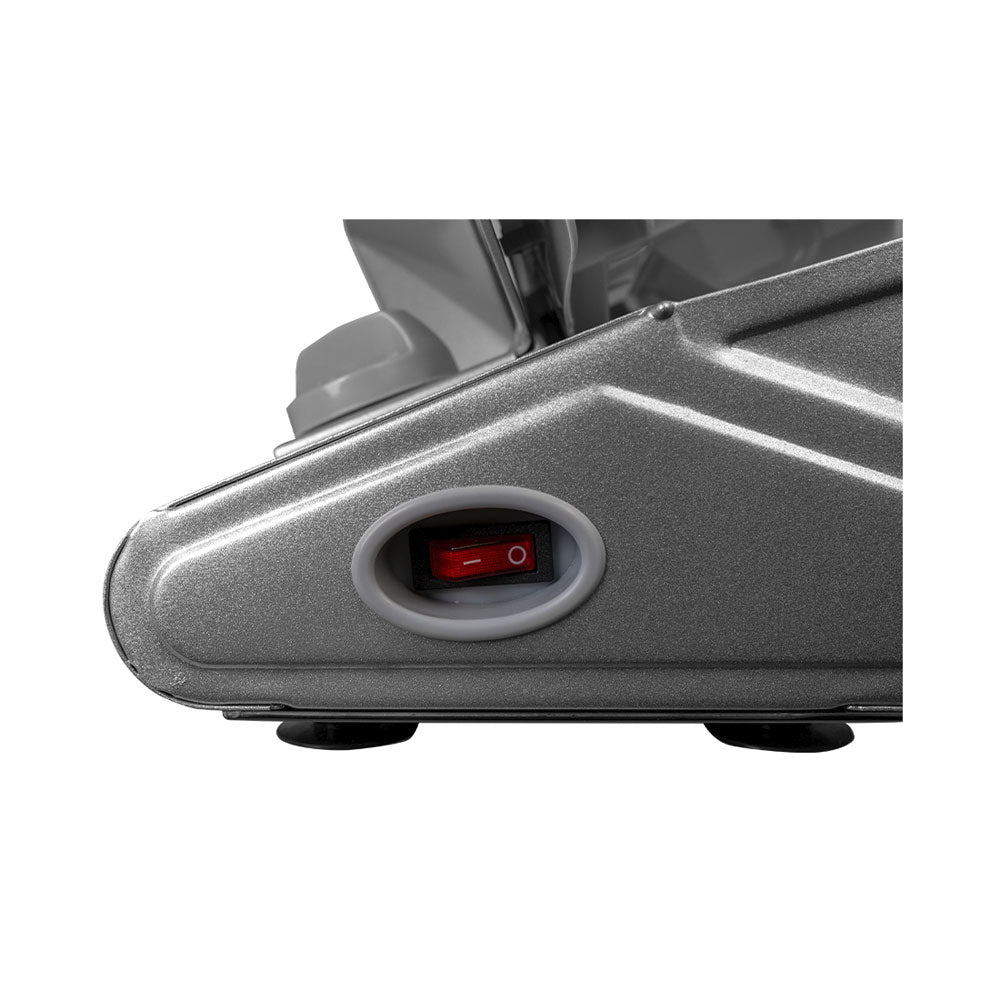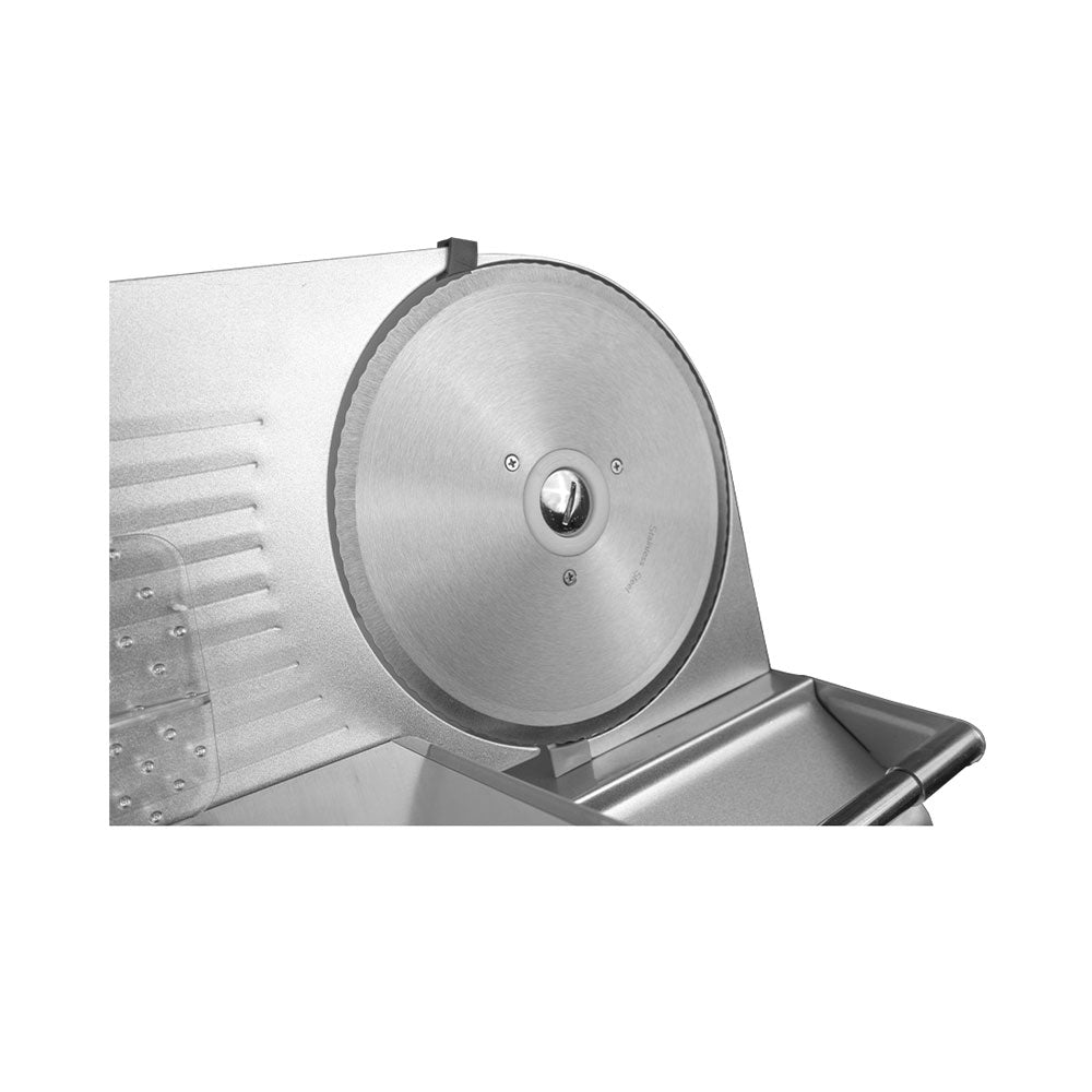 Die BergerLanz Aufschnittmaschine bietet eine präzise Schneidleistung in Kombination mit praktischer Funktionalität. Dank der stufenlosen Schnittstärkeneinstellung von 0 bis 13 mm gelingen mühelos feine oder dickere Scheiben – je nach Bedarf. Die Edelstahlklinge mit 220 mm Durchmesser sorgt für exakte Schnittergebnisse bei Wurst, Käse, Brot oder Gemüse. Für sicheren Betrieb sind ein Daumenschutz, ein Restehalter und ein leichtgängiger Schlitten integriert. Rutschfeste Kunststofffüsse gewährleisten stabilen Stand während des Schneidens. Die kompakte Maschine vereint Effizienz und Sicherheit und ist bestens geeignet für den regelmässigen Gebrauch im Alltag – vom Frühstück bis zum Abendessen.