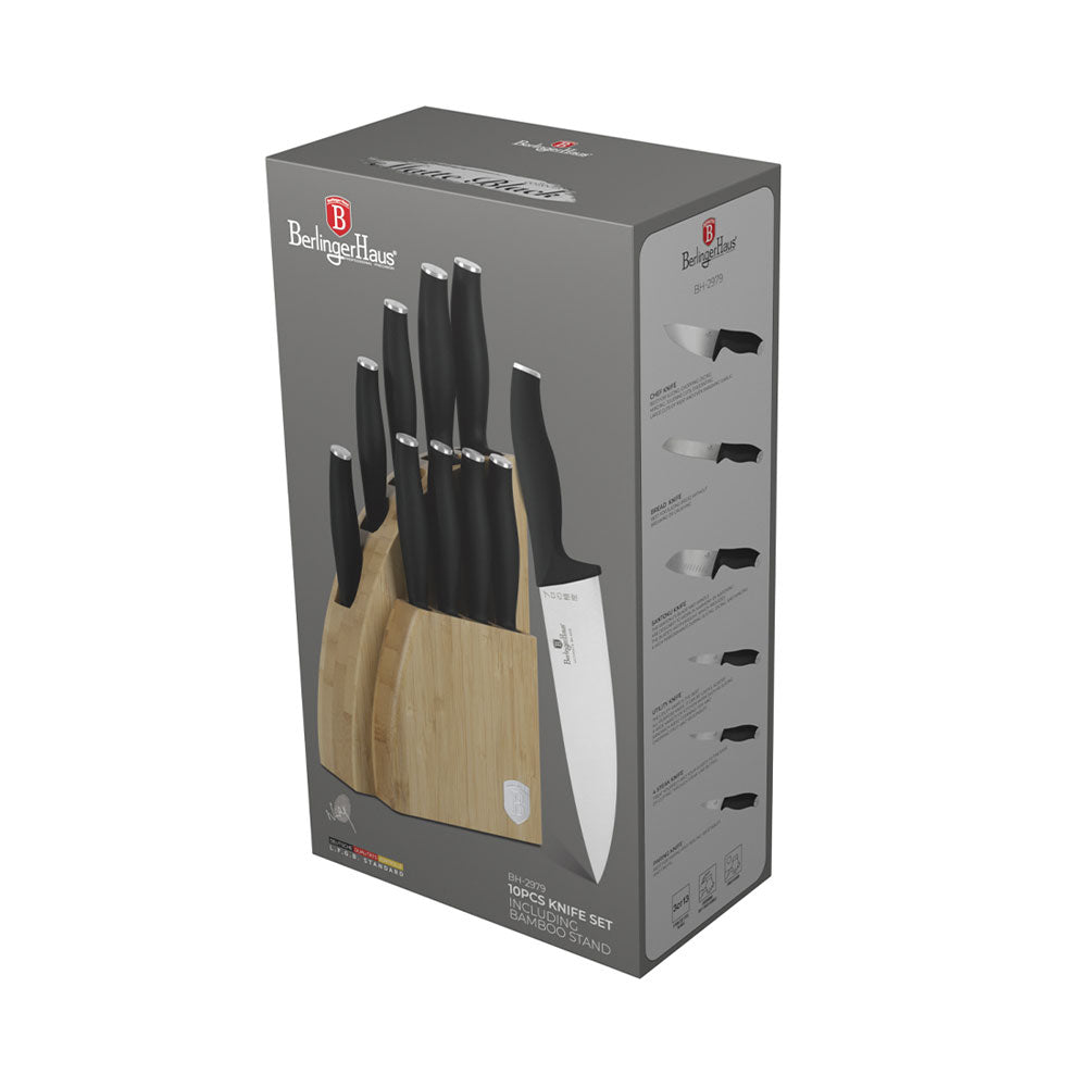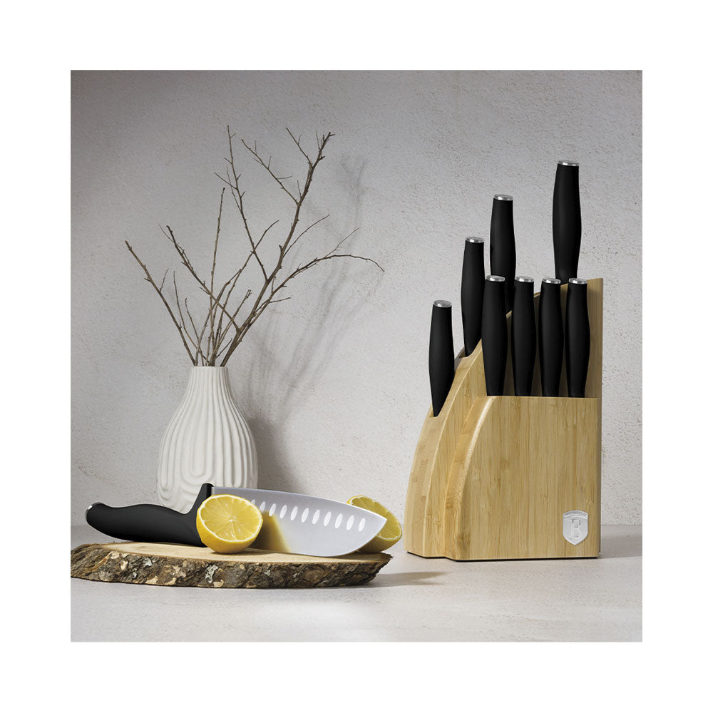 Berlinger Haus Küchenbedarf Haus 10-teiliges Messerset mit Bambus Messerblock Black Silver Collection