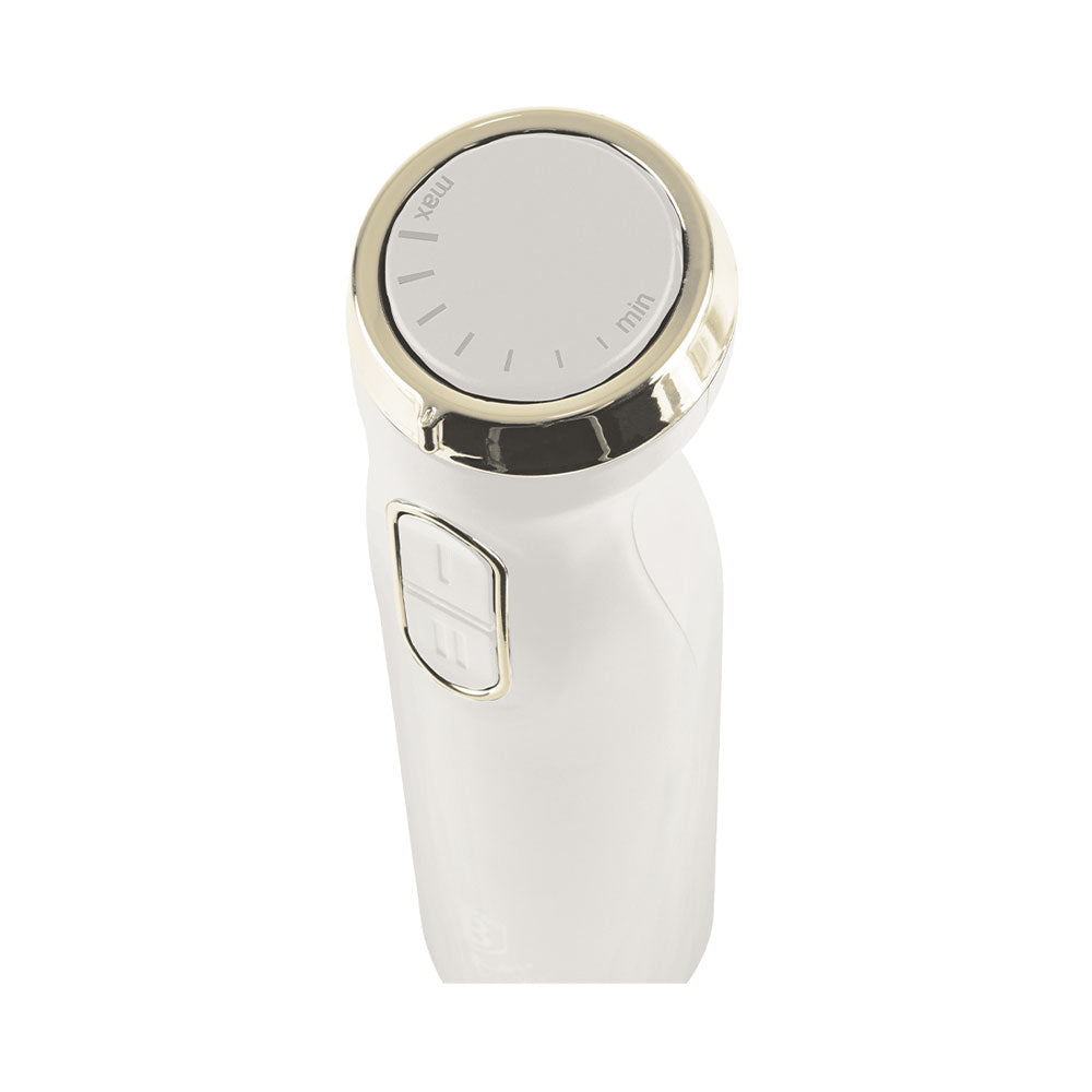 tarke 800-Watt-Motor zerkleinert Eis, mixt Smoothies und schlägt Sahne mühelos. Dank der hochwertigen Edelstahl- und Kunststoffteile ist das Set robust und langlebig. Die Titanklinge sorgt für präzises und schnelles Arbeiten. Mit den sechs Teilen – darunter Zerkleinererschüssel, Milchaufschäumer und Schneebesen – bist Du für jede Küchenaufgabe bestens ausgestattet. Die variable Geschwindigkeit passt sich genau Deinem Bedarf an. Praktisch: Der Multifunktionshalter und die Silikondeckel halten alles ordentlich. Das matte Creme-Finish macht den Stabmixer ausserdem zum stylischen Blickfang in Deiner Küche.geräumt.